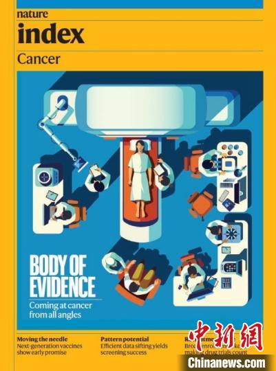 《自然》增刊 “2025自然指数-癌症” 封面。施普林格·自然 供图