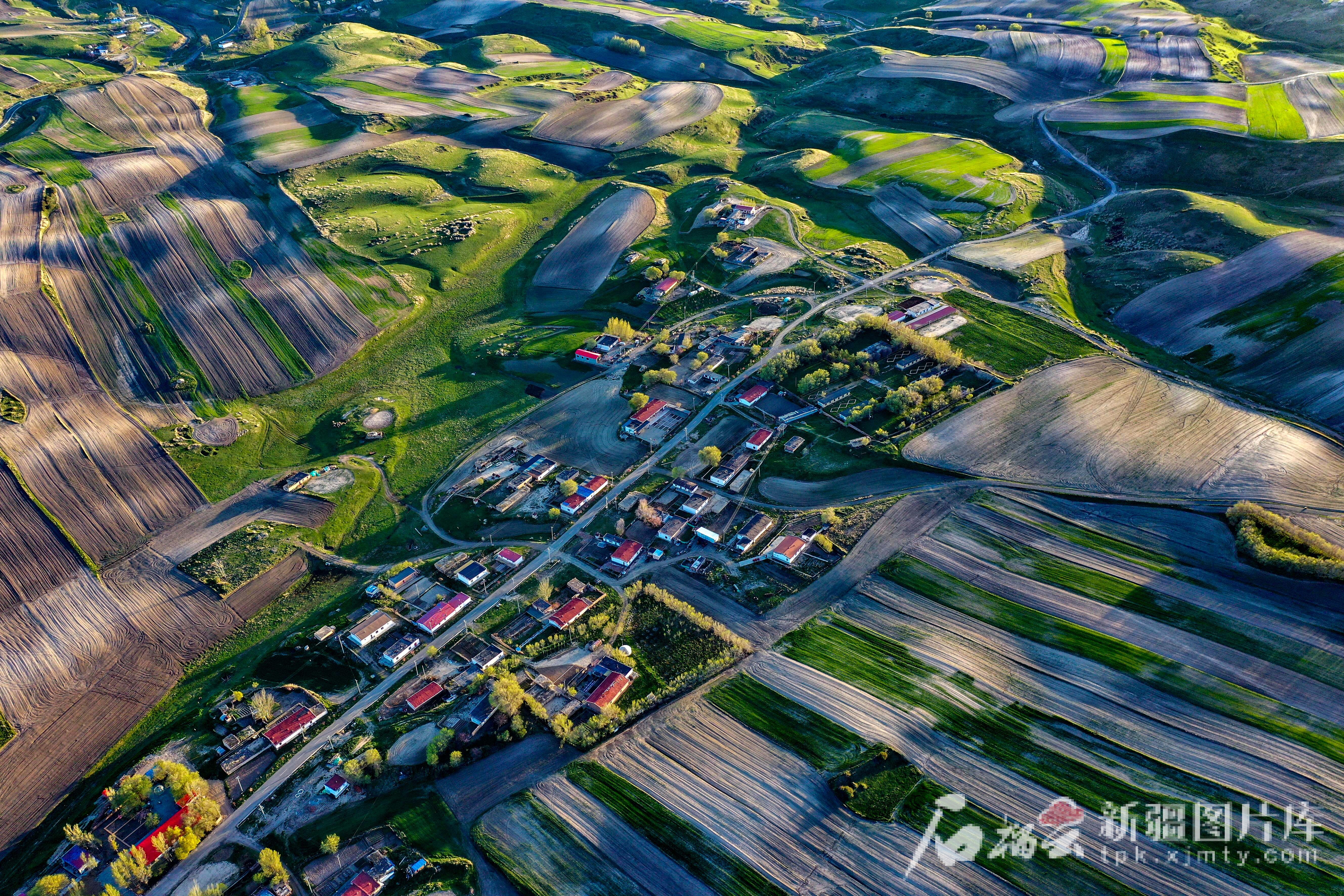 5月8日,在木垒哈萨克自治县照壁山乡平顶山村拍摄的万亩旱田景观。