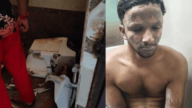 男子上厕所时马桶爆炸被毁容 疑甲烷积聚引发!印度北方邦大诺伊达发生了一起离奇事故。20岁的阿苏·纳加尔在家中上厕所时,马桶在冲水瞬间突然爆炸,导致他脸部严重烧伤,全身烧伤面积达到35%,目前正在医院接受治疗。