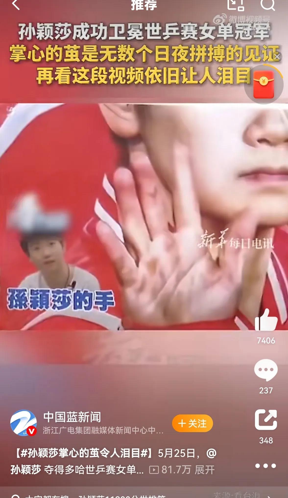 台湾名嘴手持孙颖莎照片哽咽发声。台湾名嘴雷倩在节目中手持孙颖莎一张照片哽咽发声,莎莎手掌心的老茧真的触目惊心。真的是一局一局打出来,平时训练一局一局练出来的。