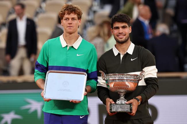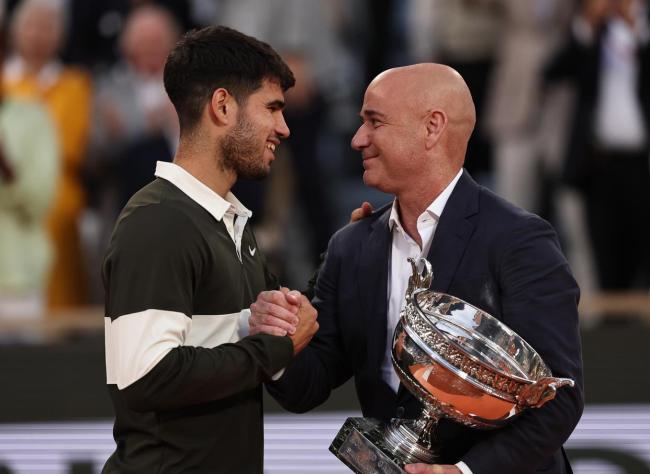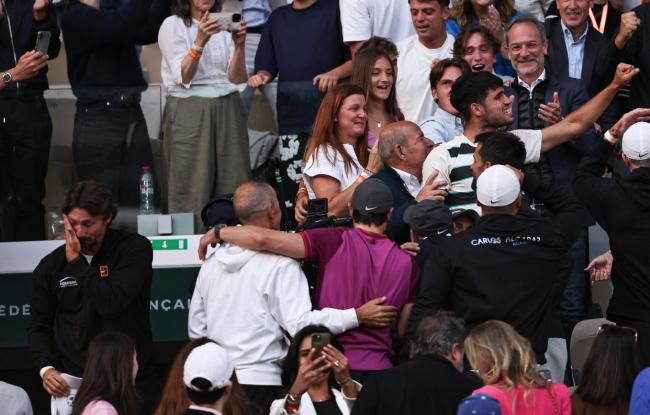 在巴黎举行的2025法国网球公开赛男单决赛中,西班牙选手阿尔卡拉斯以3比2战胜意大利选手辛纳,成功夺冠。颁奖仪式上,阿尔卡拉斯与辛纳一同亮相,网球名宿阿加西为阿尔卡拉斯颁发了奖杯。赛后庆祝时,阿尔卡拉斯的教练费雷罗在一旁激动地擦拭眼泪。