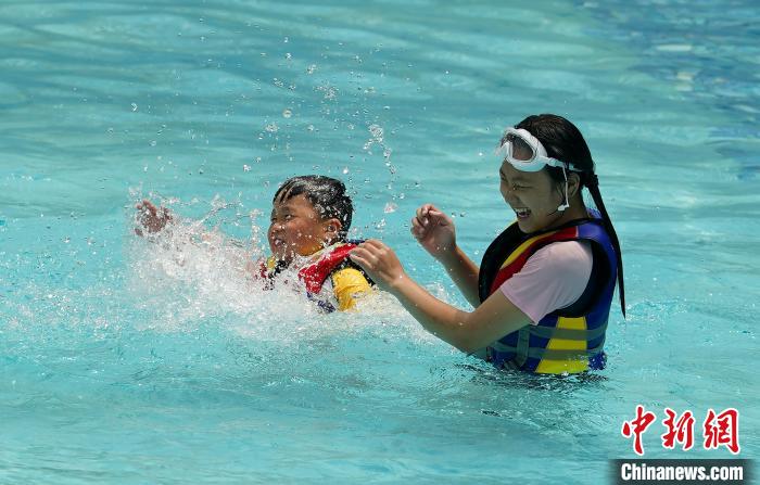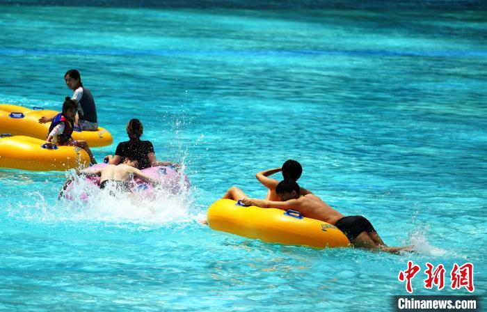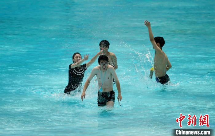 6月11日,四川成都,民众在环球中心海洋乐园戏水消暑。当日,成都市气象台发布高温红色预警信号。中新社记者 安源 摄