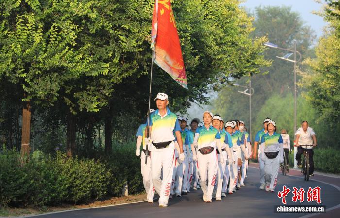 图为7月30日,市民在堤顶路上健步。田博 摄