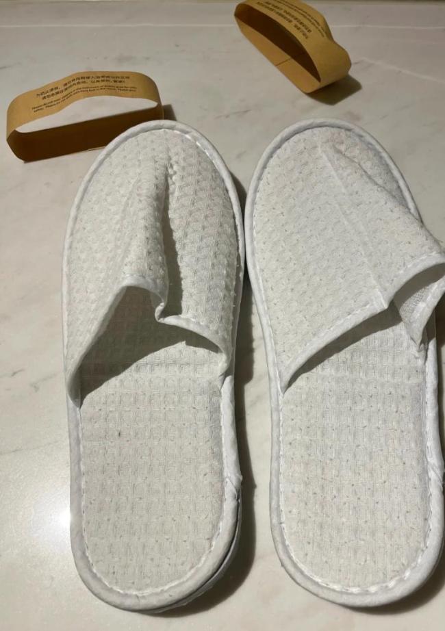 网友称发现酒店提供的拖鞋已起球,并在社交平台上表达了不满,称入住万豪时发现拖鞋起球,且鞋内有一根睫毛长度的头发。服务员告知此类拖鞋酒店回收消毒再使用。她对此表示不解,认为费用已经体现在房费中,不应以环保名义降低服务标准。