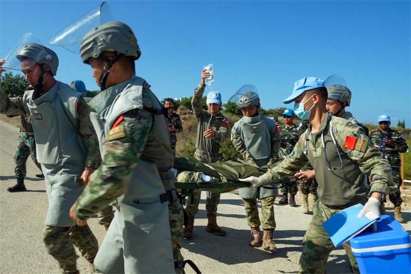 人民网开罗9月21日电 (记者薛丹)近日,中国第23批赴黎巴嫩维和部队多功能工兵分队成功参与由联黎部队组织的“天使救援—2025”系列演习。此次演习以模拟执行人道主义扫雷过程中,地雷爆炸致作业手重伤为背景,旨在提升维和部队在复杂环境下的应急处置与医疗后送能力,检验多国维和部队协同行动效能。