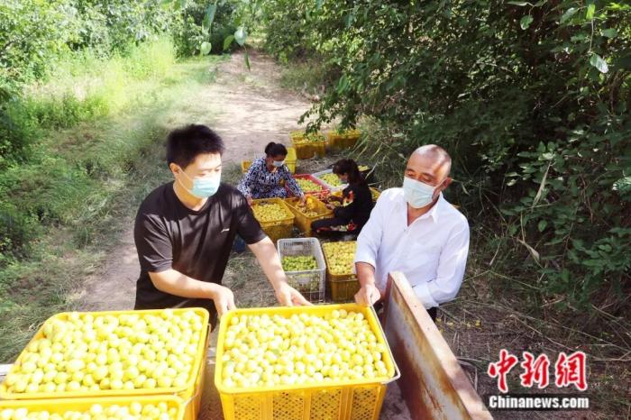 库车市融媒体中心供图当地民众展示小白杏。库车市融媒体中心供图