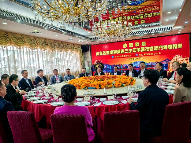 出席此次座谈交流活动的还有民建中央企业委委员、广东省青联常委、深圳市文化创意行业协会会长陈鹤平,澳门华盈(环球)集团有限公司董事长林健生,澳门东北商会会长、澳门玛宝集团董事长王英文爵士,山东省烟台市政协委员、澳门铭置投资集团董事长、世界华商领袖俱乐部主席团执行主席樊贵龙,深圳洁亚环保产业有限公司创始人朱晓芬,澳门泰卫投资发展有限公司董事长张庆燕,中国国际中医药进出口集团总经理张国庆,广东中庆物业管理有限公司总经理刘立新;山东省港澳办秘书处处长赵西颖,港澳处处长尚鹏,青岛市港澳办三级调研员吕双强,潍坊市港澳办办公室科长高心慧,威海市港澳办港澳科科长刘星杰,临沂市港澳事务服务中心主任王清东,聊城市港澳办经济协调科二级主任科员宋振华;世界经济发展报社副社长、世界华人企业家联合会秘书长肖泽葵。(图文:王冰峰、田倩倩)