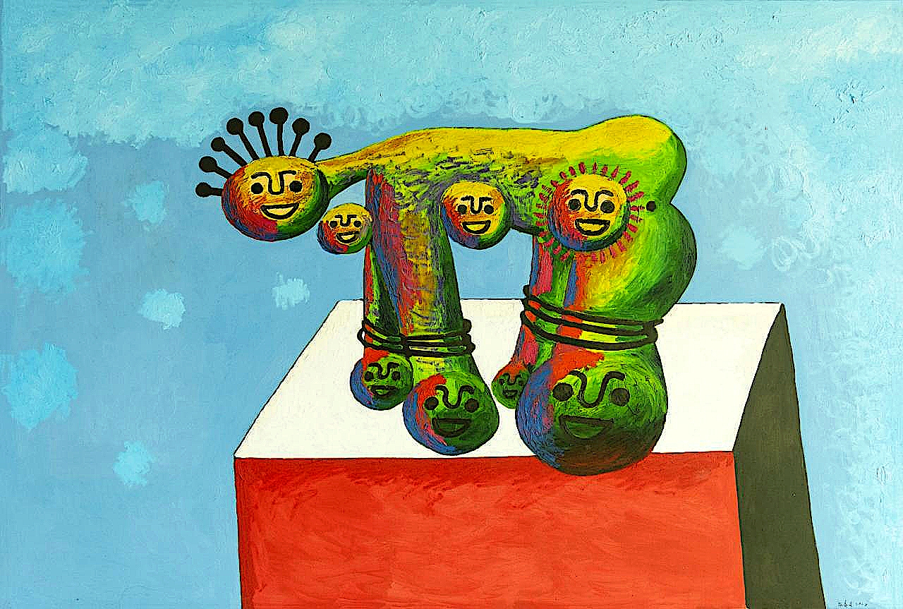 毕加索用几何切割情感,郭泰来用色彩包裹哲思。郭泰来的作品不仅展现了艺术家对生命、永恒和爱的深刻思考,他以流动的线条与浓烈的色彩交织出灵魂的轨迹,在解构与重构之间寻觅东方哲学中的“不灭”真谛。《母爱》中那环抱的光晕,不仅是血缘的延续,更是生命能量的永恒流转;《自由与爱》则通过悬浮于虚空中的形态,表达超越物质束缚的精神永生。