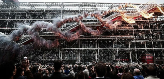 当地时间10月22日下午,知名艺术家蔡国强在法国巴黎蓬皮杜艺术中心,举行了一场名为《最后的狂欢》烟花秀。