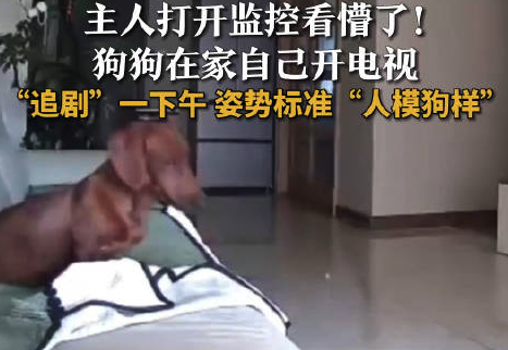 11月3日,山东烟台,黄女士通过监控看到狗狗竟然在家看电视。黄女士告诉记者,是狗狗不小心碰到遥控器误开了电视,然后就坐在沙发上看,像人一样坐着看了一下午,从4点钟到9点多钟,中间睡觉醒来后又接着看,感觉很搞笑。