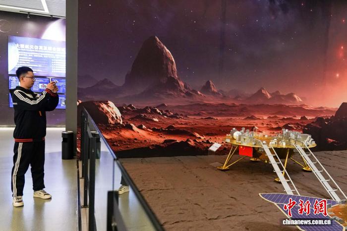 11月5日,黑龙江哈尔滨,学生在哈工大航天馆内参观天问一号着陆器模型。中新社记者 赵宇航 摄