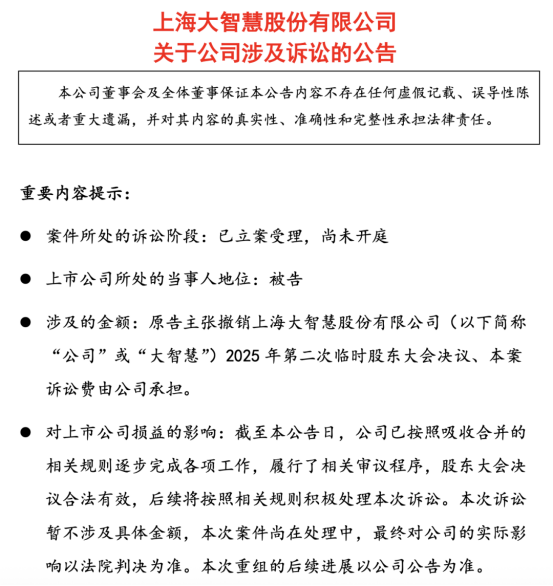 而大智慧公司回应称,已按吸收合并规则完成全部内部程序,股东大会决议合法有效,将积极应诉。