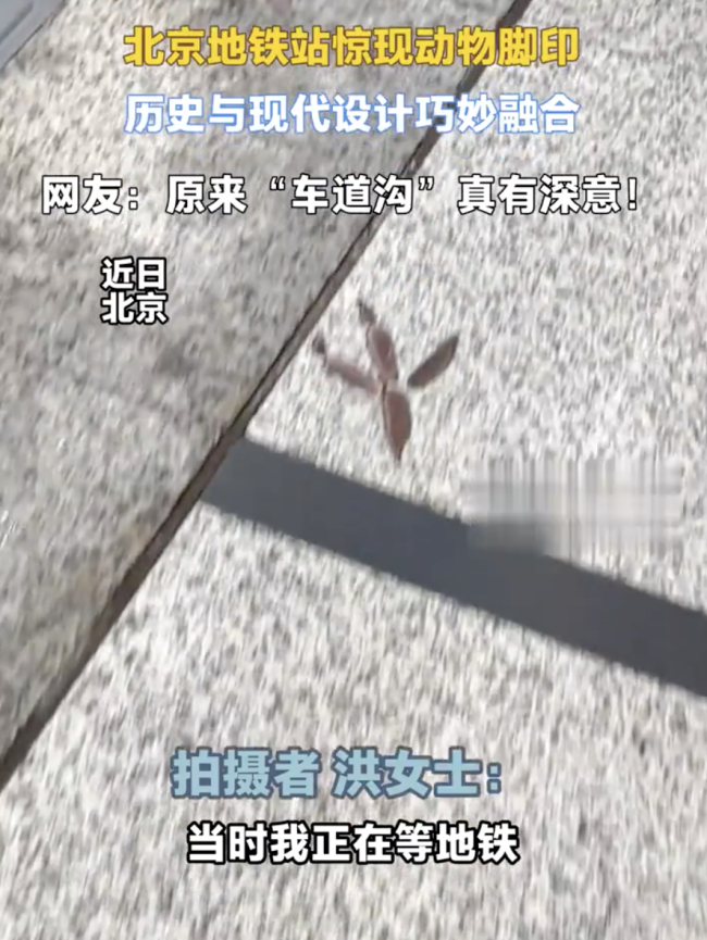 北京地铁站惊现动物脚印。近日,北京某地铁站地面出现动物脚印图案,引发乘客关注。网友推测该设计与站名“车道沟”的历史含义相关,体现现代设施与地域文化的融合。