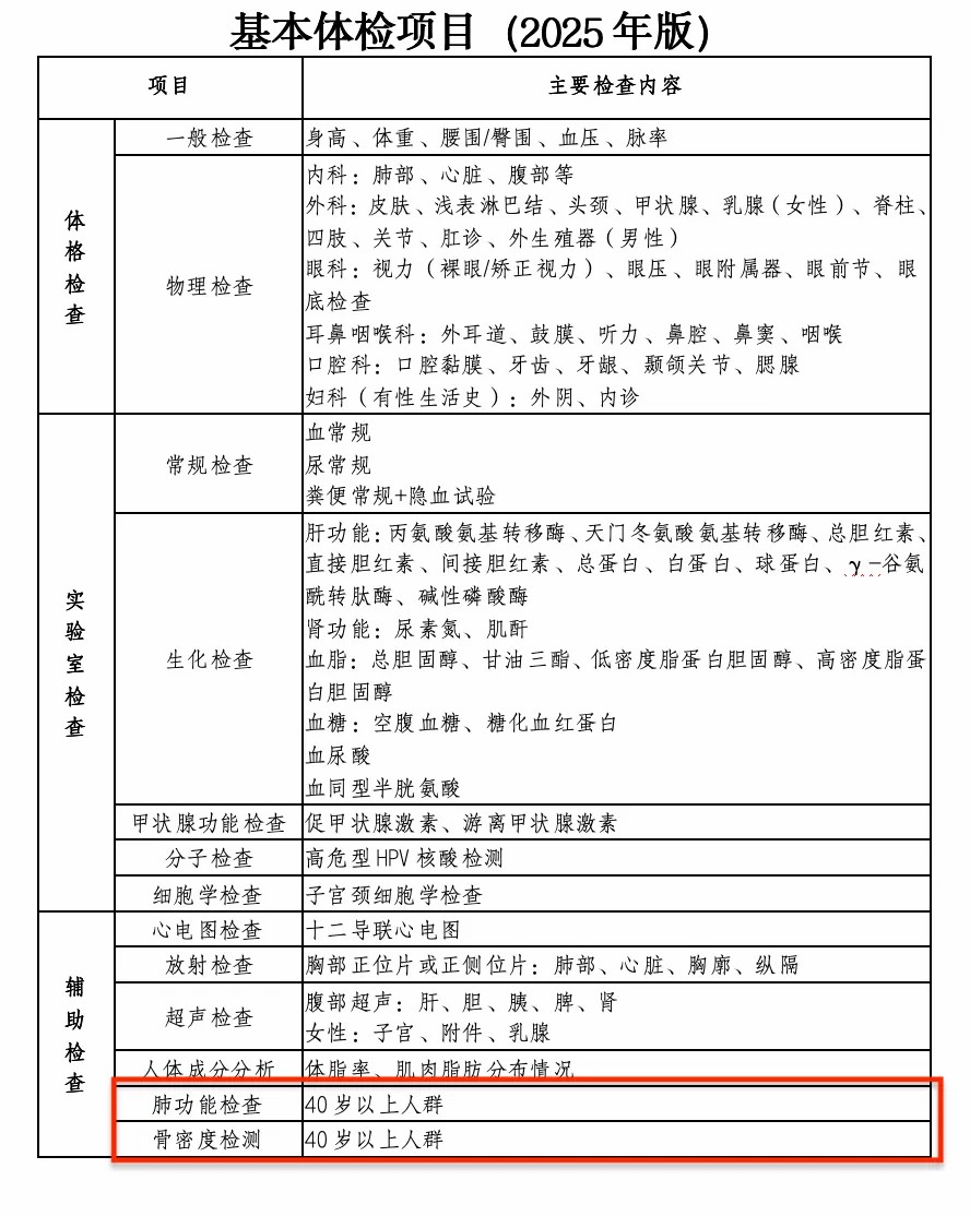 很多人每年体检都在纠结:体检项目一大堆,到底该查什么?随着年龄增加,器官也在衰老,查多了怕浪费钱,查少了又怕漏掉重点……国家卫健委今年10月底发布了《成人健康体检项目推荐指引(2025年版)》,明确推荐了40岁以上必做的两项检查。