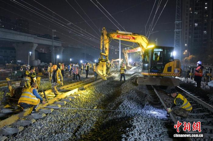 中新网成都1月16日电 (记者 刘忠俊)1月16日,成都铁路枢纽八里站信号倒接及线路拨接施工顺利完成。900余名作业人员历经330分钟连续奋战,为成渝中线高铁引入成都站工程奠定了坚实基础,也为后续项目推进创造了有利条件。