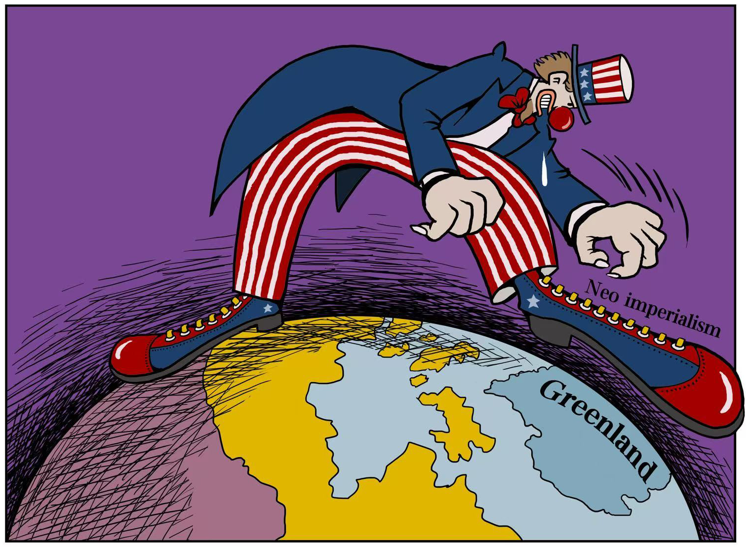 近日,美国总统特朗普声称美国“绝对需要格陵兰岛”后,美国政府进一步赤裸裸发出武力威胁,引发广泛关注。相关表态和举动是对国际关系基本准则的公然践踏,严重背离《联合国宪章》宗旨与原则,将美国的“夺岛”野心和霸权思维本质暴露无遗。美国的帝国主义霸权行径就像小丑的拙劣表演,滑稽背后是荒诞的逻辑,只会遭到国际社会的强烈批评和抵制。
