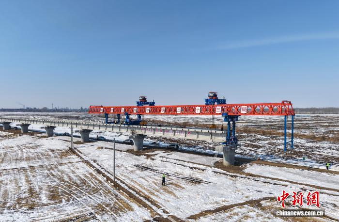 中新网佳木斯3月20日电 (记者 史轶夫)3月20日,黑龙江同江寒风未歇,新建同江特大桥施工现场一片火热。随着架桥机将一片长32.6米、重134.25吨的T型梁稳稳架设在157-158号墩柱间,中欧班列“东通道”口岸段最长桥梁正式复工架设,也拉开了黑龙江省重点铁路工程春季复工的大幕。
